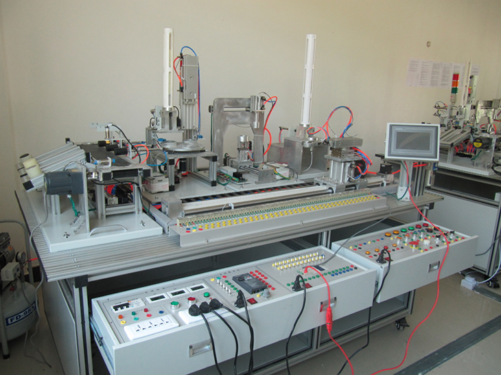 機電一體化技術(shù)實訓(xùn)設(shè)備是指機械技術(shù)、電工電子技術(shù)、微電子技術(shù)、信息技術(shù)、傳感器技術(shù)、接口技術(shù)、信號變換技術(shù)等多種技術(shù)進行有機地結(jié)合,并綜合應(yīng)用到實際中去的技能實訓(xùn)綜合技術(shù),現(xiàn)代化的自動生產(chǎn)設(shè)備幾乎可以說都是機電一體化的設(shè)備。自動化生產(chǎn)線實訓(xùn)考核系統(tǒng),可以培養(yǎng)和提高學(xué)生專業(yè)綜合能力,是一種重要的實訓(xùn)設(shè)備。自動化生產(chǎn)線實訓(xùn)系統(tǒng)、基于PLC技術(shù)的自動化生產(chǎn)線實訓(xùn)考核系統(tǒng),可以培養(yǎng)和提高學(xué)生專業(yè)綜合能力,是一種重要的實訓(xùn)設(shè)備。自動化生產(chǎn)線實訓(xùn)系統(tǒng)整體包括自動供料、檢測傳輸、檢測加工、自動裝配、自動分揀等工序,很好的將機械技術(shù)、微電子技術(shù)、電工電子技術(shù)、傳感測試技術(shù)、接口技術(shù)、信息變換技術(shù)、網(wǎng).絡(luò)通信技術(shù)等多種技術(shù)有機地結(jié)合。該系統(tǒng)中自動分揀站的設(shè)計過程,包括系統(tǒng)硬件設(shè)計、PLC控制設(shè)計和程序設(shè)計方法,F(xiàn)代化的自動生產(chǎn)設(shè)備的最大特點是它的綜合性和系統(tǒng)性,在這里,機械技術(shù)、微電子技術(shù)、電工電子技術(shù)、傳感測試技術(shù)、接口技術(shù)、信息變換技術(shù)、網(wǎng)絡(luò)通信技術(shù)等多種技術(shù)有機地結(jié)合,并綜合應(yīng)用到生產(chǎn)設(shè)備中:而系統(tǒng)性指的是,生產(chǎn)線的傳感檢測、傳輸與處理、控制、執(zhí)行與驅(qū)動等機構(gòu)在微處理單元的控制下協(xié)調(diào)有序地工作,有機地融合在一起?删幊绦蚩刂破(PLC)以其高抗干擾能力、高可靠性、高性能價格比且編程簡單而廣泛地應(yīng)用在現(xiàn)代化的自動生產(chǎn)設(shè)備中,擔(dān)負(fù)著生產(chǎn)線的大腦一微 處理單元的角色。因此,培養(yǎng)掌握機電一體化技術(shù),掌握PLC技術(shù)及PLC網(wǎng)絡(luò)技術(shù)的技術(shù)人材是當(dāng)務(wù)之急。而一套基于PLC技術(shù)的自動化生產(chǎn)線實訓(xùn)考核設(shè)備可以模擬一個與實際生產(chǎn)情況+分接近的控制過程,使學(xué)習(xí)者得到一個非常接近于實際的教學(xué)設(shè)備環(huán)境,從而縮短了理論教學(xué)與實際應(yīng)用之間的距離。自動分揀站需完成對上一單元送來的已加工、裝配的工件進行分揀。使不同顏色的工件從不同的料槽分流的功能。當(dāng)輸送站送來工件放到傳送帶上并為入料口光電傳感器檢測到時,即啟動變頻器,工件開始送入分揀區(qū)進行分揀。上海碩博弘揚大國工匠精神, 發(fā)展職業(yè)教育,應(yīng)用教學(xué)設(shè)備,為企業(yè)培養(yǎng)高技能人才,而專業(yè)生產(chǎn):光機電一體化(自動生產(chǎn)線)實訓(xùn)裝置、灌裝自動化生產(chǎn)線實訓(xùn)裝置、工業(yè)自動生產(chǎn)線實訓(xùn)裝置 、工業(yè)控制模擬實訓(xùn)裝置 、機電一體化組合實訓(xùn)平臺 、機電一體化綜合實訓(xùn)考核裝置、自動化生產(chǎn)安裝與調(diào)試實訓(xùn)裝置 、光機電一體化高速分揀實訓(xùn)系統(tǒng) 、典型機電設(shè)備安裝與控制實訓(xùn)裝置、模塊式柔性自動環(huán)形生產(chǎn)線實驗系統(tǒng)(帶機器人工程型)、立體停車庫實物教學(xué)實驗裝置、機電一體化柔性生產(chǎn)線加工實訓(xùn)系統(tǒng)(5站)、網(wǎng)絡(luò)型模塊式柔性自動化生產(chǎn)線實驗系統(tǒng)、模塊式柔性自動環(huán)形生產(chǎn)線實驗系統(tǒng)(工程型)、柔性生產(chǎn)制造實驗系統(tǒng)(工程型)、現(xiàn)代物流倉儲自動化實驗系統(tǒng)、運動實訓(xùn)裝置、循環(huán)搬運自動控制實訓(xùn)裝置、平面雙軸運行控制實訓(xùn)裝置、工業(yè)機械手實訓(xùn)裝置、物料分揀實訓(xùn)裝置、機械手實訓(xùn)裝置 、立體倉庫實訓(xùn)裝置、十字路口交通燈實訓(xùn)系統(tǒng)、機電液氣一體化綜合實訓(xùn)裝置、光機電一體化高速分揀實訓(xùn)系統(tǒng)、步進伺服控制綜合實訓(xùn)平臺、光機電氣一體化控制實訓(xùn)系統(tǒng)、 光機電一體化綜合實訓(xùn)考核裝置、光機電一體化實訓(xùn)考核裝置、光機電一體化實訓(xùn)考核裝置、光機電氣一體化控制實訓(xùn)系統(tǒng)、自動生產(chǎn)線拆裝與調(diào)試實訓(xùn)裝置、柔性自動化生產(chǎn)線實訓(xùn)系統(tǒng)。