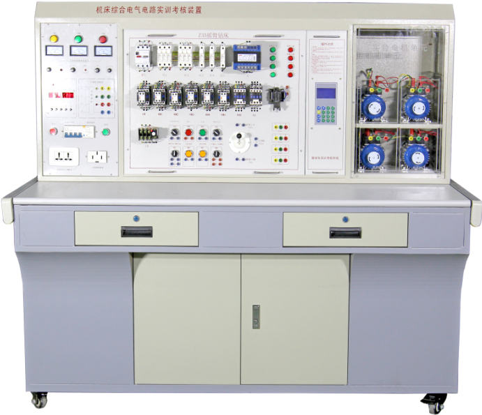 機(jī)床電氣控制實(shí)訓(xùn)室設(shè)備是機(jī)電設(shè)備維修與管理、電氣自動(dòng)化技術(shù)等專業(yè)學(xué)生的實(shí)訓(xùn)場(chǎng)所,通過實(shí)驗(yàn)、實(shí)訓(xùn),使學(xué)生掌握工廠常用的各類型設(shè)備的電路維護(hù)檢修。如鉆床控制電路、車床控制電路、銑床控制電路、磨床控制電路及鏜床控制電路等。主要產(chǎn)品有普通車床、萬(wàn)能銑床、萬(wàn)能外圓磨床實(shí)訓(xùn)考核裝置,可開展機(jī)床常用電器及選擇、機(jī)床繼電器控制電路的基本環(huán)節(jié)、典型機(jī)床繼電器控制系統(tǒng)的分析和設(shè)計(jì)方法、機(jī)床維修等實(shí)訓(xùn)內(nèi)容。機(jī)床電氣控制實(shí)訓(xùn)室設(shè)備面向?qū)I(yè)、機(jī)電一體化技術(shù)、機(jī)械制造與自動(dòng)化、電氣自動(dòng)化技術(shù)專業(yè) 、實(shí)訓(xùn)目的、通過實(shí)驗(yàn)實(shí)訓(xùn)使學(xué)生掌握典型機(jī)床電氣控制系統(tǒng)的安裝、調(diào)試及維護(hù)的操作技能,提高學(xué)生的動(dòng)手能力。本實(shí)訓(xùn)室還可用高級(jí)維修電工技能鑒定的培訓(xùn)和考核。 機(jī)床電氣技能實(shí)訓(xùn)考核鑒定裝置、主要實(shí)訓(xùn)項(xiàng)目及功能 、主要承擔(dān)《機(jī)床電氣控制系統(tǒng)運(yùn)行與維護(hù)》、《常用電氣設(shè)備控制檢修與維護(hù)》、《高級(jí)維修電工考證培訓(xùn)》等課程實(shí)訓(xùn)、實(shí)驗(yàn)教學(xué)以及相關(guān)的職業(yè)技能鑒定,可開展實(shí)訓(xùn)項(xiàng)目: CA6140車床電氣控制線路的安裝、調(diào)試及維護(hù)。 X62W萬(wàn)能銑床電氣控制線路的安裝、調(diào)試及維護(hù)。 Z3040搖臂鉆床電氣控制線路的安裝、調(diào)試及維護(hù)。 電動(dòng)葫蘆電氣控制線路的安裝、調(diào)試及維護(hù)。 職業(yè)技能培訓(xùn)及鑒定、考證。 機(jī)床電氣技能實(shí)訓(xùn)考核裝置、C6140 普通車床電氣技能實(shí)訓(xùn)考核裝置(半實(shí)物)、M1432 萬(wàn)能外圓磨床電氣技能實(shí)訓(xùn)考核裝置(半實(shí)物)、M7120 平面磨床電氣技能實(shí)訓(xùn)考核裝置(半實(shí)物)|網(wǎng)絡(luò)型平面磨床電氣技能實(shí)訓(xùn)智能考核裝置、PDH 電動(dòng)葫蘆電氣技能實(shí)訓(xùn)考核裝置(半實(shí)物)、機(jī)床電氣技能實(shí)訓(xùn)考核鑒定裝置、T68 臥室鏜床電氣技能實(shí)訓(xùn)考核裝置(半實(shí)物)、X62W 型萬(wàn)能銑床電氣技能實(shí)訓(xùn)考核裝置 ( 半實(shí)物 )、Z3040 搖臂鉆床電氣技能實(shí)訓(xùn)考核裝置(半實(shí)物)、C650-2 普通車床電氣技能培訓(xùn)考核實(shí)驗(yàn)裝置|網(wǎng)絡(luò)型普通車床電氣技能實(shí)訓(xùn)智能考核裝置、M7130K型 平面磨床電氣技能培訓(xùn)考核實(shí)驗(yàn)裝置、網(wǎng)絡(luò)型平面磨床電氣技能實(shí)訓(xùn)智能考核裝置、PBA龍門刨床電氣技能培訓(xùn)考核實(shí)驗(yàn)裝置、網(wǎng)絡(luò)型龍門刨床電氣技能實(shí)訓(xùn)智能考核裝置、綜合機(jī)床電氣電路實(shí)訓(xùn)考核鑒定裝置(四個(gè)機(jī)床電路)、 綜合機(jī)床電氣電路實(shí)訓(xùn)考核鑒定裝置(四個(gè)機(jī)床電路)、T68 臥式鏜床實(shí)訓(xùn)及技能考核裝置、網(wǎng)絡(luò)型臥式鏜床電氣技能實(shí)訓(xùn)智能考核裝置、機(jī)床電氣控制技術(shù)及工藝實(shí)訓(xùn)考核裝置、機(jī)床電氣實(shí)驗(yàn)臺(tái)、網(wǎng)孔型萬(wàn)能機(jī)床電路實(shí)訓(xùn)考核鑒定裝置、網(wǎng)孔型萬(wàn)能機(jī)床電路實(shí)訓(xùn)考核鑒定裝置(含 PLC 、變頻器)、X62W萬(wàn)能銑床實(shí)訓(xùn)及技能考核裝置、網(wǎng)絡(luò)型萬(wàn)能銑床電氣實(shí)訓(xùn)智能考核裝置、Z3040B搖臂鉆床電氣技能培訓(xùn)考核實(shí)驗(yàn)裝置、網(wǎng)絡(luò)型搖臂鉆床電氣技能實(shí)訓(xùn)智能考核裝置、機(jī)床電氣電路仿真實(shí)訓(xùn)考核裝置、機(jī)床電器電路實(shí)驗(yàn)臺(tái)、網(wǎng)絡(luò)化智能型機(jī)床電氣技能實(shí)訓(xùn)考核裝置。