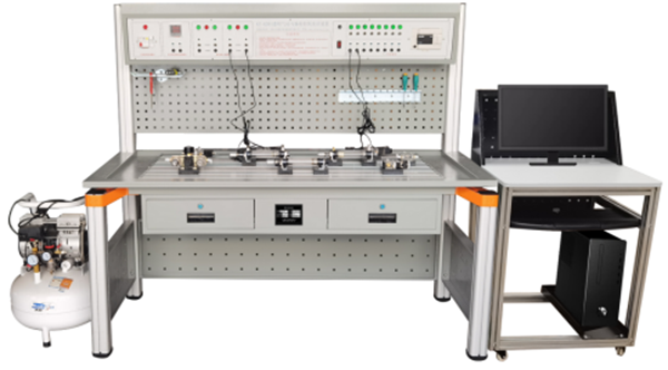 實驗臺由實驗桌、實驗操作區(qū)、網(wǎng)孔工具掛板、靜音氣泵、常用氣動元件、主控機箱、電腦桌等幾部分組成。