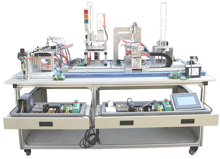 光機電氣一體化控制實訓平臺由由鋁合金導軌式實訓臺、典型的機電一體化設備的機械部件、PLC模塊、變頻器模塊、按鈕模塊、電源模塊、模擬生產(chǎn)設備實訓模塊、接線端子排和各種傳感器、計算機等組成。整體結(jié)構采用開放式和拆裝式,實訓裝置用于機械部件組裝,可根據(jù)現(xiàn)有的機械部件組裝生產(chǎn)設備,也可添加機械部件組裝其他生產(chǎn)設備,使整個裝置能夠靈活的按教學或競賽要求組裝具有生產(chǎn)功能的機電一體化設備。模塊采用標準結(jié)構和抽屜式模塊放置架,互換性強;按具有生產(chǎn)性功能和整合學習功能的原則確定模塊內(nèi)容,使教學或競賽時可方便的選擇需要的模塊。設備需完全符合電工電子全國職業(yè)技能大賽所要求,同時還要求具有可拓展功能,可以組成更加大型的生產(chǎn)模擬系統(tǒng),以配合各個用戶學校不同層次,不同專業(yè)的教學及培訓要求。