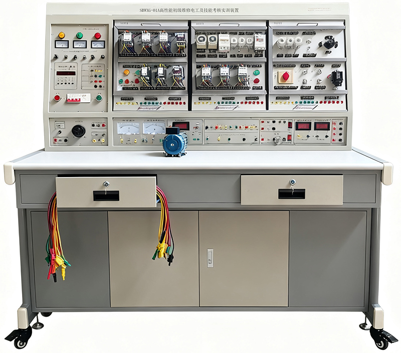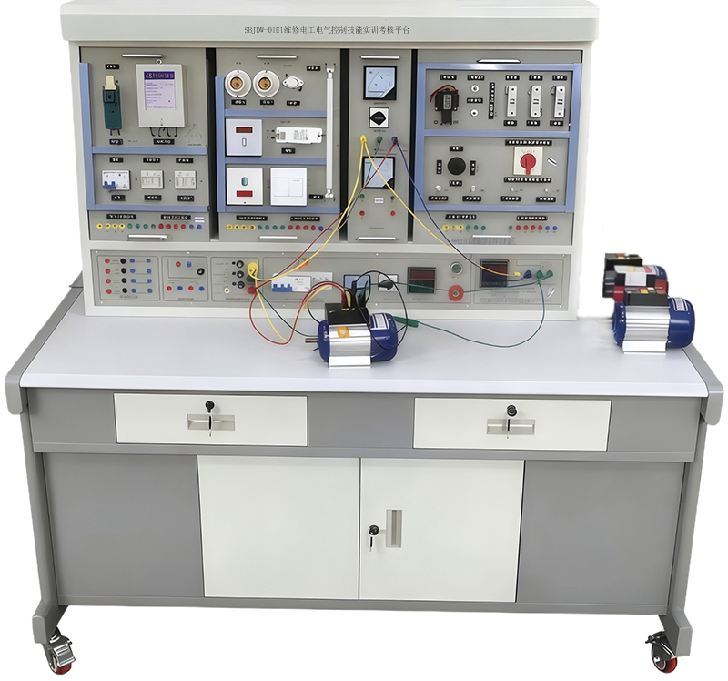 維修電工實訓設備,維修電工實訓臺,維修電工實訓考核裝置適合高等職業(yè)學校、中職業(yè)學校的機電設備安裝與維修、機電技術應用、電氣運行與控制、電氣技術應用、電子電器應用與維修等專業(yè)技術等課程和非機電類專業(yè)的必修課程模塊或選修課程模塊《電機控制電路的教學與實訓及從事機械設備和電氣系統(tǒng)線路及器件的安裝、調試與維護及維修電工修理人員。維修電工實訓設備主要掌握,維修電工常識和基本技能,維修電工室內線路的安裝,接地裝置的安裝與維修,常見變壓器的檢修與維護,各種常用電機的拆裝與維修,常用低壓電器及配電裝置的安裝與維修,電動機基本控制線路的安裝與維修,常用機床電氣線路的安裝與維修,電子線路的安裝與調試,電氣控制線路設計,可編程控制器及其應用。