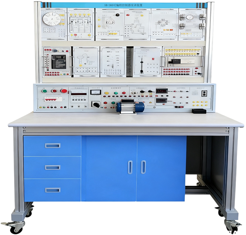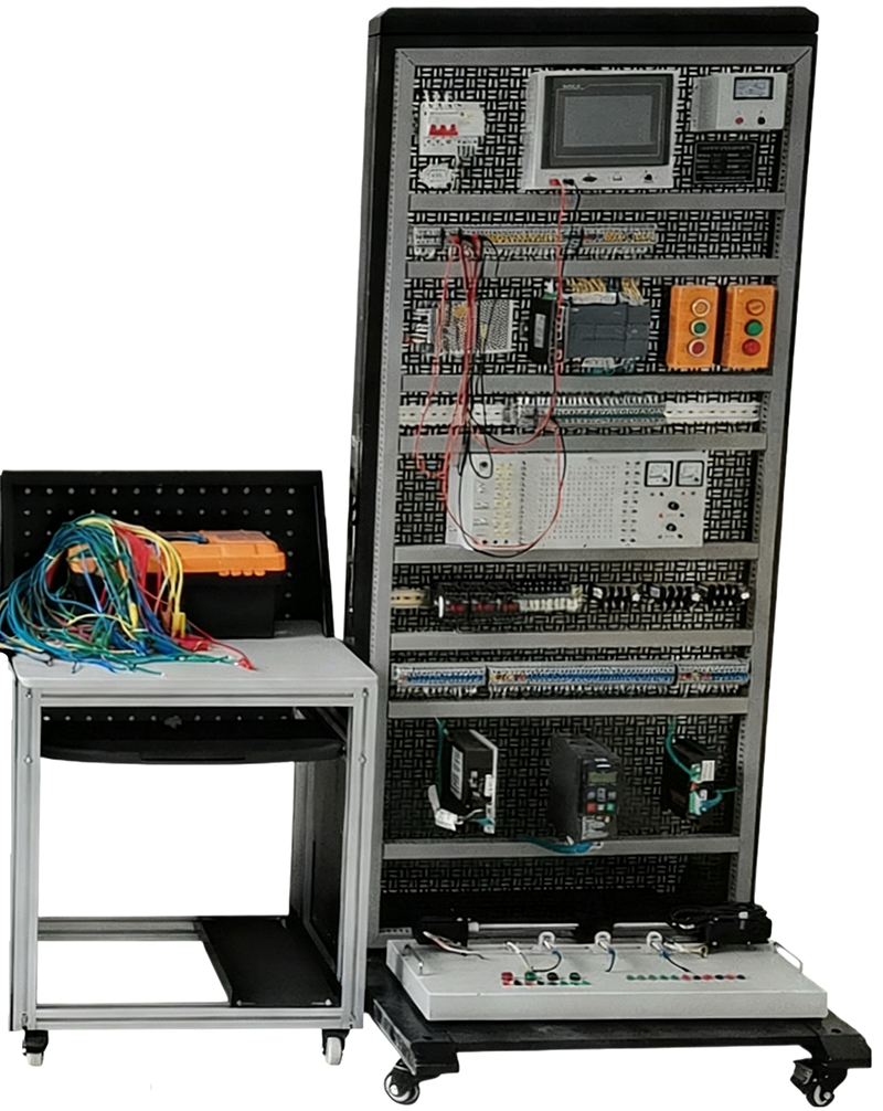 PLC可編程實驗實訓平臺,PLC實訓裝置,PLC實訓臺,PLC可編程實訓考核裝置是集可編程控制器、通信編輯器、編程軟件、工控組態(tài)軟件、仿真教學軟件、模擬控制實訓掛箱于一體,可直觀地進行PLC的基本指令訓練,多個應(yīng)用廣泛的PLC實際應(yīng)用模擬實訓和實物控制實訓,同時也為了高層次的設(shè)計開發(fā)實訓提供良好的條件。實訓裝置還配備三相鼠籠異步電機、繼電器、變頻器能完成多個電氣控制實訓。是專為職業(yè)院校及中職學校開設(shè)的可編程控制器技術(shù)及其應(yīng)用等課程實驗配套設(shè)計的,可完成PLC編程控制器技術(shù)課程的相關(guān)教學實訓,是大中院校及中職理想的實驗設(shè)備。