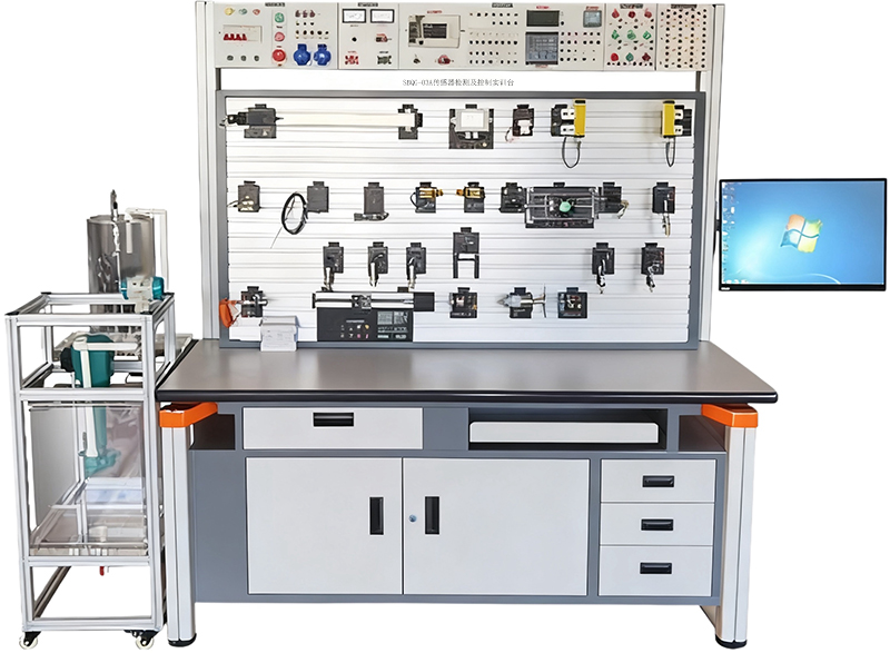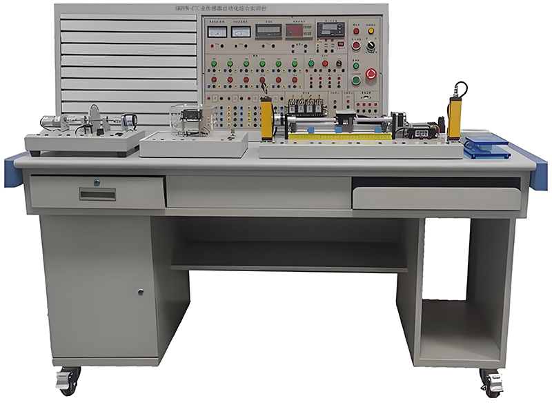 傳感器檢測實(shí)訓(xùn)設(shè)備,傳感器實(shí)訓(xùn)臺,工業(yè)傳感器實(shí)訓(xùn)臺,傳感器實(shí)訓(xùn)室設(shè)備是適應(yīng)不同類別與不同層次的專業(yè),推出模塊化的實(shí)訓(xùn),主要用于各大、中專院校開設(shè)的自動檢測技術(shù)、傳感器原理與技術(shù)、非電量電測技術(shù)、工業(yè)自動化儀表與控制、機(jī)械量電則等課程的實(shí)驗(yàn)。通過課程教學(xué)大綱規(guī)定的相關(guān)實(shí)驗(yàn),可以幫助學(xué)生加強(qiáng)對書本知識的理解,并在做實(shí)驗(yàn)的過程中,通過對型號的采集、轉(zhuǎn)換、分析,使學(xué)生掌握基本的操作技能,提高學(xué)生的動手能力,培養(yǎng)學(xué)生掌握使用傳感器的檢測基本技能及傳感器的測試技術(shù)、設(shè)計(jì)性實(shí)驗(yàn),使學(xué)生能利用傳感器構(gòu)成自動控制系統(tǒng),培養(yǎng)學(xué)生初步工程實(shí)踐能力。為各高等院校、中專與職業(yè)技術(shù)學(xué)院等新建或擴(kuò)建實(shí)驗(yàn)室提供了理想的實(shí)設(shè)備。