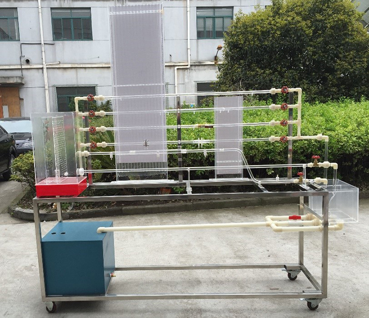 移動(dòng)式不銹鋼實(shí)驗(yàn)臺(tái)、儲(chǔ)水箱;雷諾測試管;伯努利測試管;沿程阻力系數(shù)測試管;突擴(kuò)、突縮測試管;閥門局部阻力系數(shù)測試管;孔板流量計(jì)測試管;文丘里流量計(jì)測試管;和皮托管測試管;測壓板直接顯示總水頭線和測壓管水頭線。