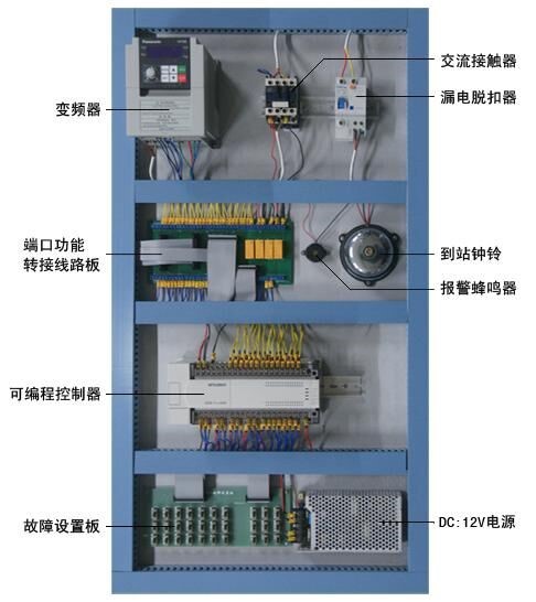 電梯的電氣控制系統(tǒng)采用PLC和交流變頻調(diào)速控制,其硬件結(jié)構(gòu)的組成及功能與實際電梯完全一樣。具有自動平層、自動關(guān)門、順向響應(yīng)轎內(nèi)外呼梯信號、直駛、電梯安全運行保護(hù)以及電梯急停、慢上、慢下、照明、風(fēng)扇等功能,性能可靠、運行平穩(wěn)、操作簡單、能耗低,特別適合于教學(xué)。此外,透明仿真教學(xué)電梯的軟硬件均采用開放式結(jié)構(gòu),因此,院校也可以利用此套裝置進(jìn)行二次開發(fā)研究。