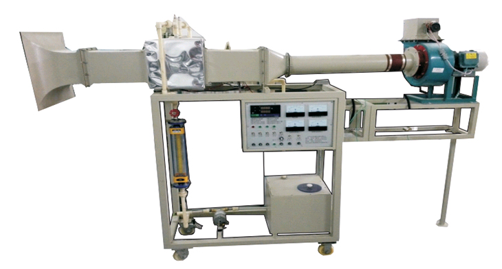 主要配置:氣[空氣]-[熱水]換熱式。由風(fēng)機、控制箱、測溫系統(tǒng)、翅片管、實驗風(fēng)筒、不銹鋼實驗臺、控制箱、斜管微壓計、水泵、流量計、不銹鋼電熱水箱和水循環(huán)系統(tǒng)組成。