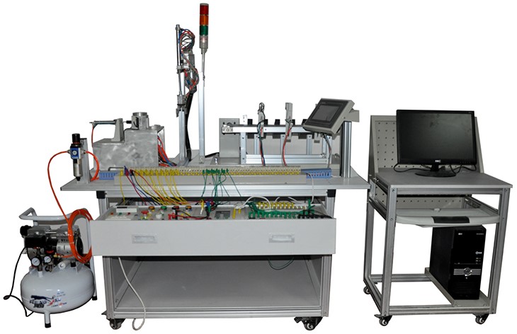 本設(shè)備主要包括實訓(xùn)臺架、典型的機電一體化設(shè)備的機械部件、PLC模塊、變頻器模塊、按鈕模塊、電源模塊、模擬生產(chǎn)設(shè)備實訓(xùn)模塊、接線端子排和各種傳感器等組成。整體結(jié)構(gòu)采用開放式和拆裝式,實訓(xùn)裝置用于機械部件組裝,可根據(jù)現(xiàn)有的機械部件組裝生產(chǎn)設(shè)備,也可添加機械部件組裝其他生產(chǎn)設(shè)備,使整個裝置能夠靈活的按教學(xué)或競賽要求組裝具有生產(chǎn)功能的機電一體化設(shè)備。