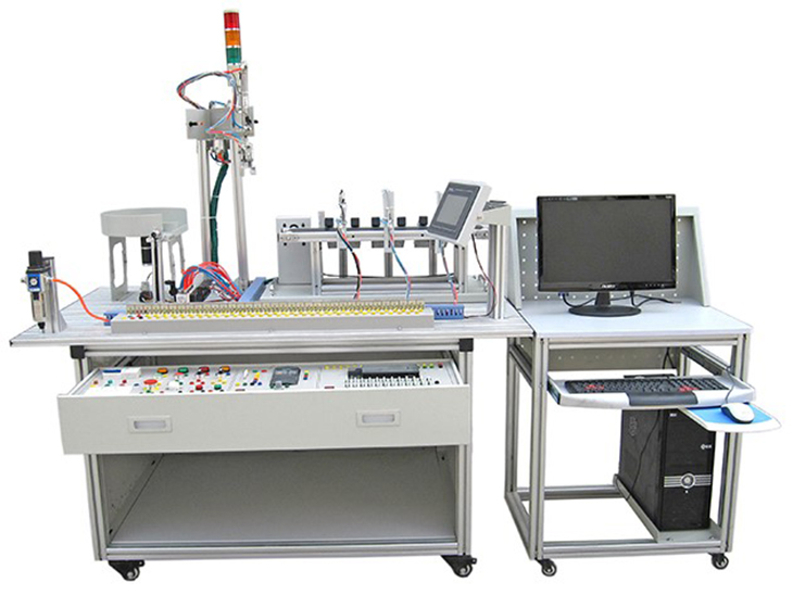 光機(jī)電一體化實(shí)訓(xùn)考核裝置、光機(jī)電一體化實(shí)訓(xùn)考核設(shè)備是一種最為典型的機(jī)電一體化產(chǎn)品,是為職業(yè)院校、職業(yè)教育培訓(xùn)機(jī)構(gòu)而研制的,適合機(jī)電一體化、電氣自動(dòng)化等相關(guān)專業(yè)的教學(xué)和培訓(xùn)。光機(jī)電一體化實(shí)訓(xùn)考核裝置它在接近工業(yè)生產(chǎn)制造現(xiàn)場基礎(chǔ)上又針對教學(xué)及實(shí)訓(xùn)目的進(jìn)行了專門設(shè)計(jì),強(qiáng)化了機(jī)電一體化的安裝與調(diào)試能力。光機(jī)電一體化實(shí)訓(xùn)考核裝置由導(dǎo)軌式型材實(shí)訓(xùn)臺、機(jī)電一體化設(shè)備部件、電源模塊、按鈕模塊、PLC模塊、變頻器模塊、交流電機(jī)模塊、步進(jìn)電機(jī)及驅(qū)動(dòng)器模塊、模擬生產(chǎn)設(shè)備實(shí)訓(xùn)單元(包含上料機(jī)構(gòu)、搬運(yùn)機(jī)械手、皮帶輸送線、物件分揀等)和各種傳感器等組成。采用開放式和拆裝式結(jié)構(gòu)設(shè)計(jì),可根據(jù)現(xiàn)有的機(jī)械部件組裝生產(chǎn)設(shè)備,使整個(gè)裝置能夠靈活的按實(shí)訓(xùn)教學(xué)需要組裝機(jī)電一體化設(shè)備。裝置采用工業(yè)標(biāo)準(zhǔn)結(jié)構(gòu)設(shè)計(jì)及抽屜式模塊放置架,組合方便?刂茖ο缶捎玫湫蜋C(jī)電設(shè)備部件,接近工業(yè)現(xiàn)場環(huán)境,滿足實(shí)訓(xùn)教學(xué)或技能競賽需求。